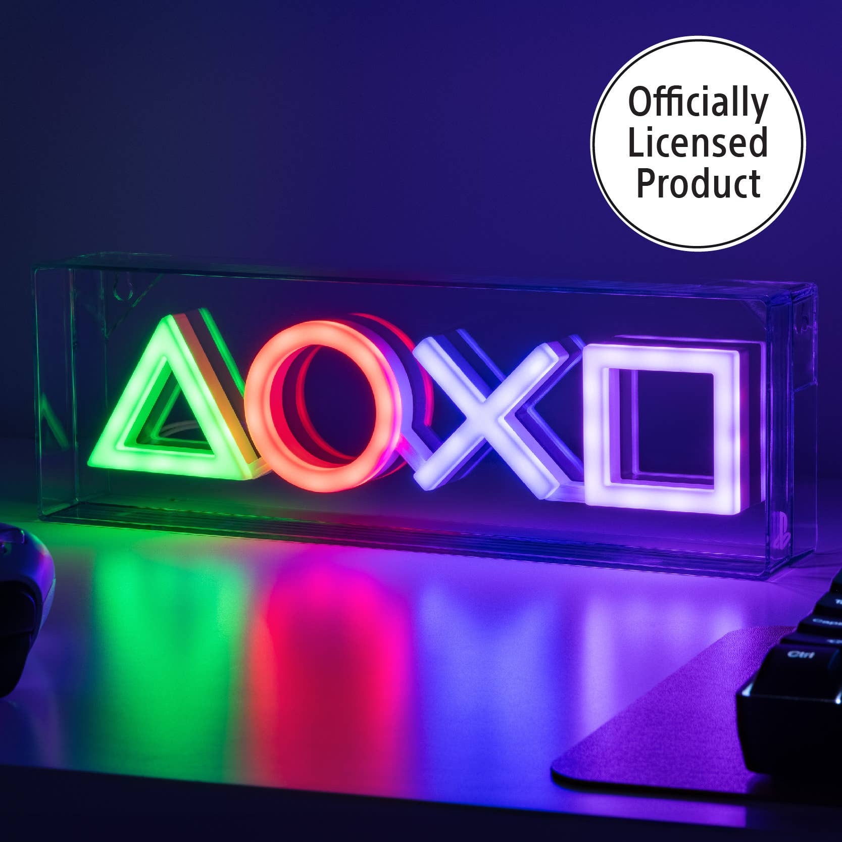 The 29.8cm (11.7") wide LED light captures the iconic PlayStation controller icons - triangle, circle, cross and square. Whether it's mounted on a wall or placed on a shelf, its vibrant four-colour glow will showcase your dedication to the gaming world.